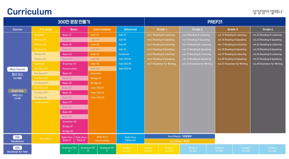 삼성영어셀레나는 체계화된 교재 시스템과 커리큘럼을 자랑하는데요. 오늘은 한눈에 보는 을 소개합니다!