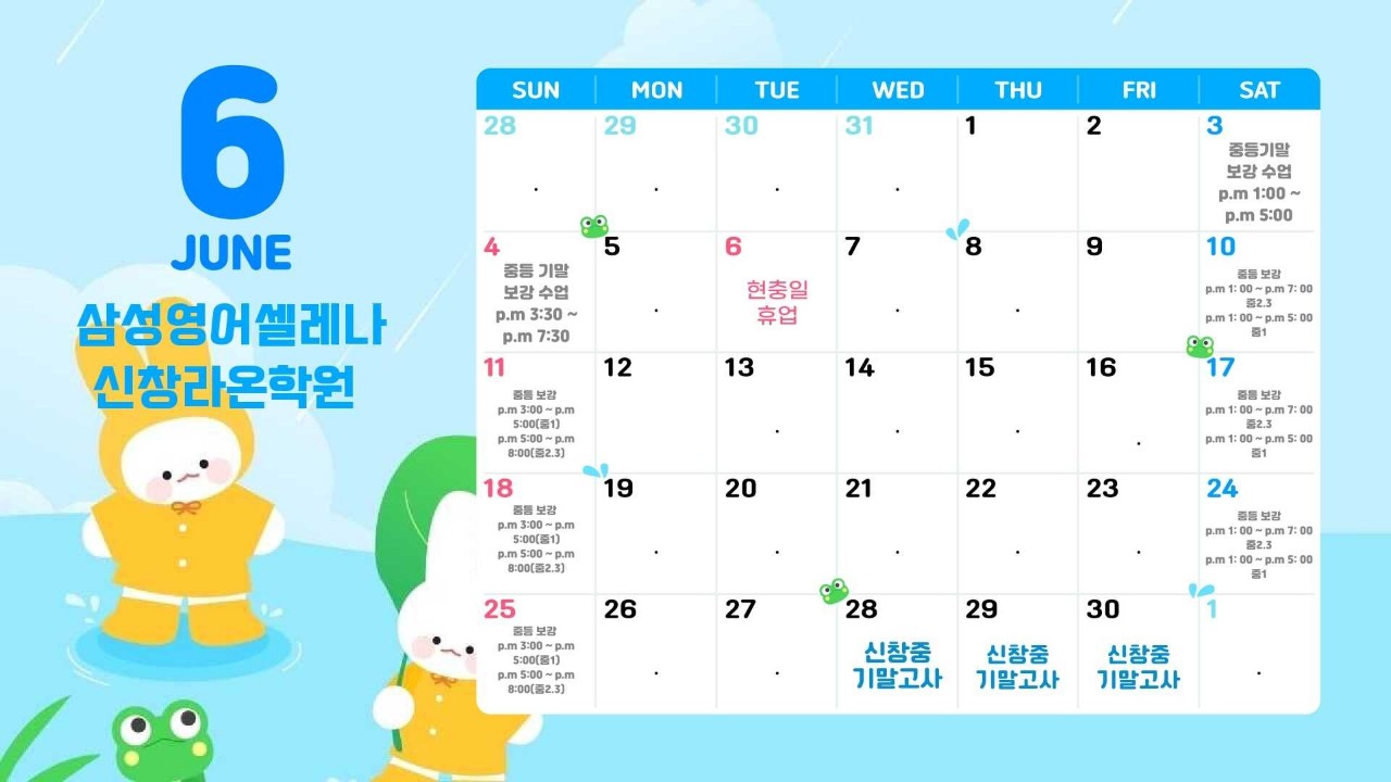 6월 둘째주 중등 기말시험 대비 보강수업 일정