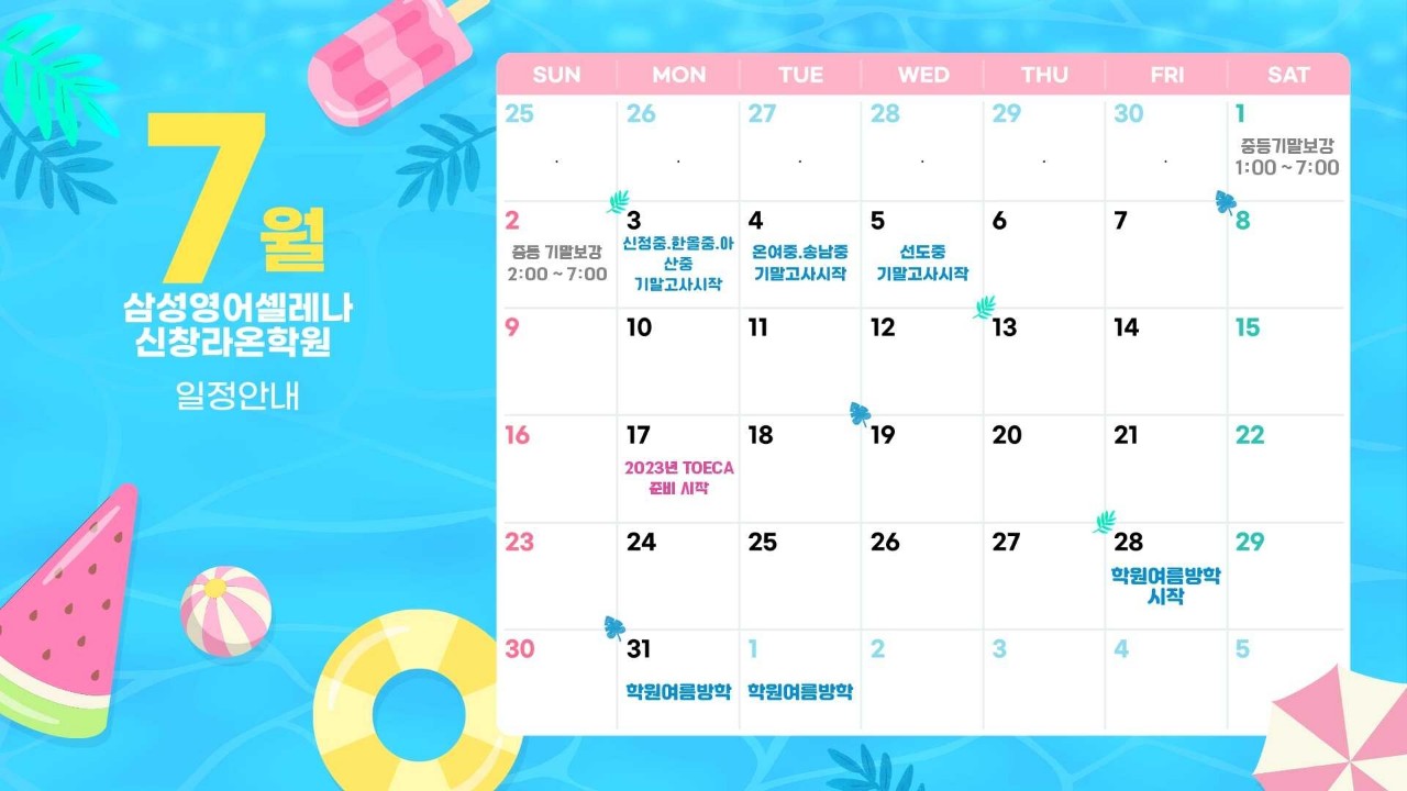 7월 첫째주 중등 기말시험 대비 보강수업 일정