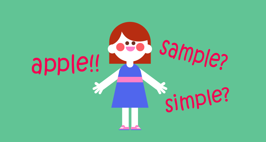철자와 함께 파닉스 수업이 되었다면 apple뿐만 아니라 sample, simple.. 등도 발음이 가능해지겠지요?